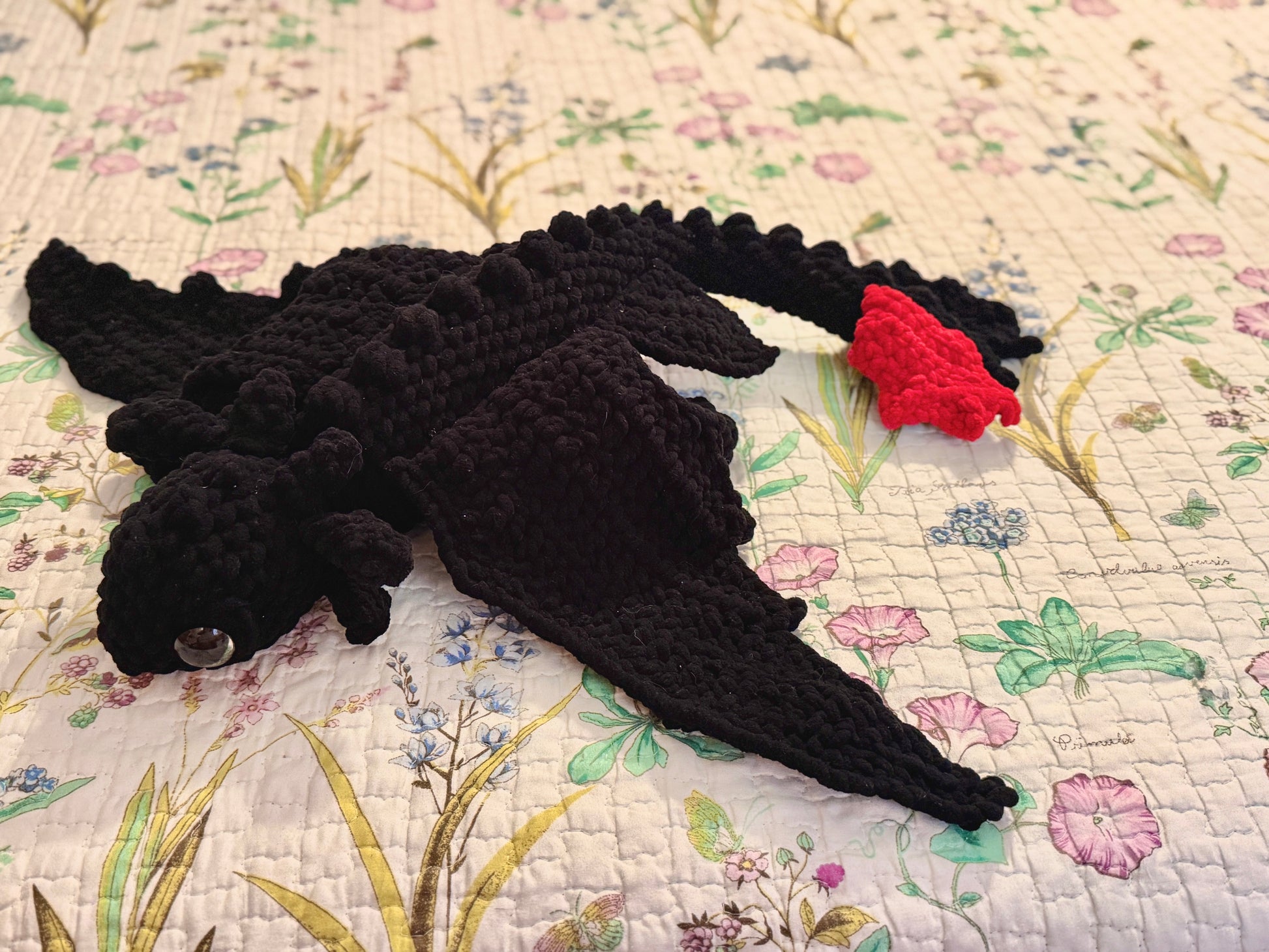 A professional-level pattern with the only materials required being: a crochet hook and black yarn (I used approximately five skeins).