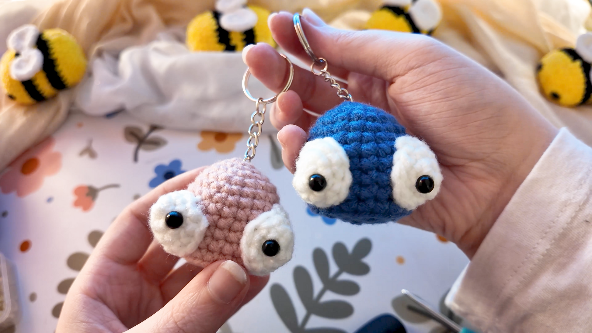 Only materials required: a crochet hook, yarn in white and a color of your preference.